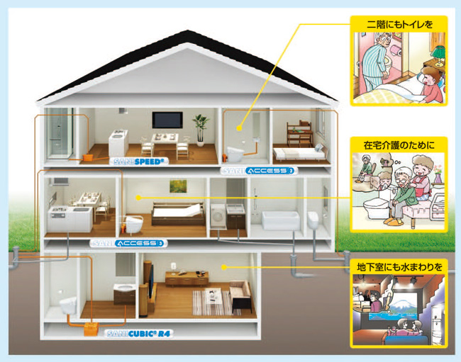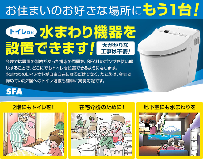SFAポンプが、今までトイレがなかった場所に、新たにトイレを増設するときに直面する問題を解決してくれるからです!